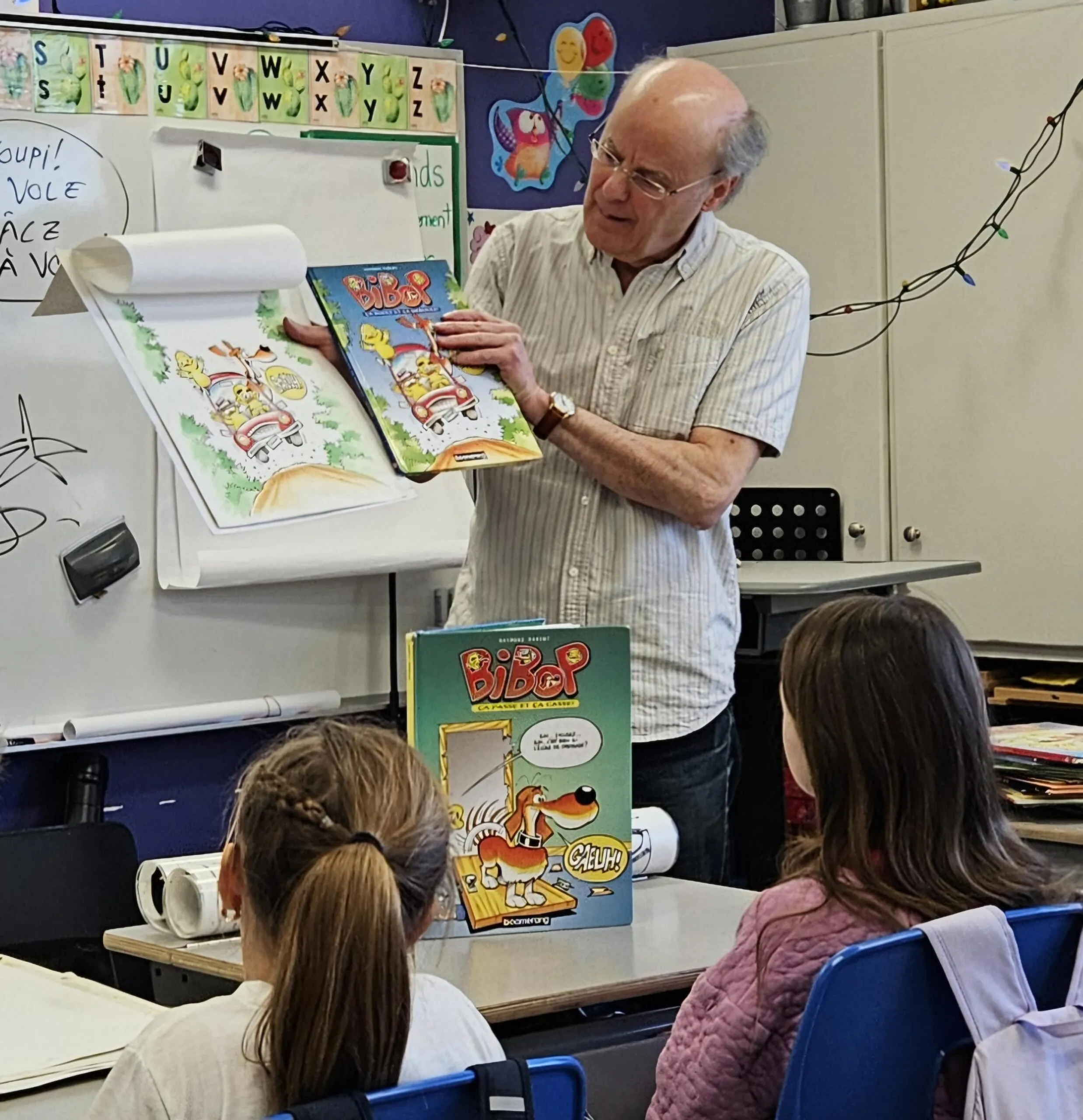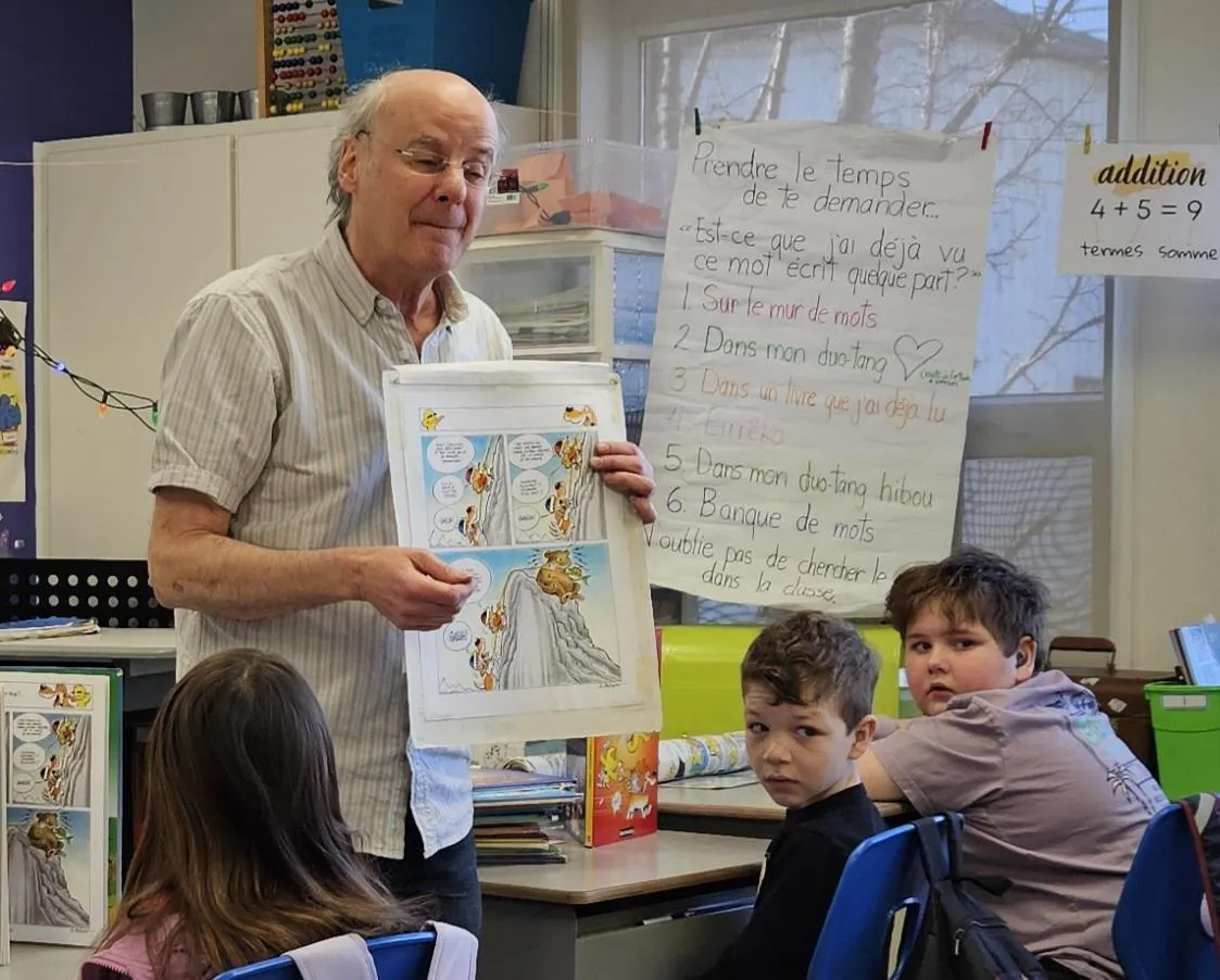 Les élèves de la 3e à la 6e année ont eu la chance de recevoir la visite de Raymond Parent, bédéiste. Lors de cette rencontre, il a présenté son travail, partagé son parcours professionnel et expliqué les différentes étapes de création d’une bande dessinée. Cette activité a permis aux élèves de découvrir le métier de bédéiste, de poser des questions et de stimuler leur créativité et leur intérêt pour la lecture et le dessin.